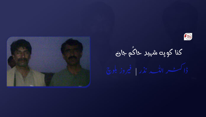 ہیت آتے مستی دریسہ ڈاکٹر اللہ نذر پارے کہ “تینا و رحمت عرف حاکُم جان نا سنگتی نا زیی آ اگہ کتاب اس ہم لکھیو کمے، اونا کڑد ئنا زی آ کتاب اس لکھیو ہم کمے ولے اینو اونا شہادت نا دے آ نُمتو منہ گڑا پاؤ، ای شہید حاکم اسے عمر ئنا اُن، اسے ہفتہ سینا فرخ ءِ، ای و شہید اسے جاہ آ رُدانن، خوانانن جیبری نا اسکول اٹی اسے جاہ آ ولے دہمی کلاس آن پد ای مشکے گجر نا اسکول آ خواننگ کن ہناٹ او ہموڑے جیبری نا اسکول ئٹی خواننگ ٹی ئسک۔”