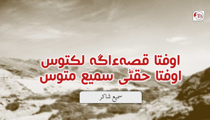 اینو دا کسہ ءِ چل (40) سال آن زیات ءِ…. وخت انا نشانیک کنا مون آ کرنچ آتا دروشم اٹ پاش ءُ۔ کنا خُشک داسہ چاندی نا تار آن پر مسنو۔ زئیفہ کنا بھاز انگا انتظار ڈکھ گڑتی آن ہنانے کُب مسنے ولے ننا مادر پدری آ جوزہ غاک داسہ ہم ورنا ءُ داسہ ہم نن کِن او ہمو ہفت سال نا ننا چنا اصغر ءِ…. اینو مسہ سال مننگ ءِ او ننا خن تیان اودیم کورگم ءِ۔ اونا ہچ ءُ درک اس اف کہ او ہرا میدان مش جبل اٹ نہار آتون جنگ تننگ ءِ او زندہ ہم ارے یا اف….؟