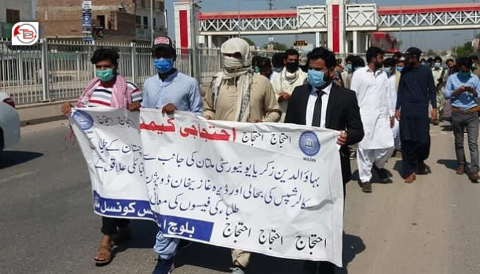 دا لانگ مارچ ءِ بہاو الدین زکریا یونیورسٹی نا بلوچ خوانندہ غاک اسکالرشپ آتا ایسری و بلوچستان کوٹہ ءِ کم کننگ نا برخلاف کننگو۔