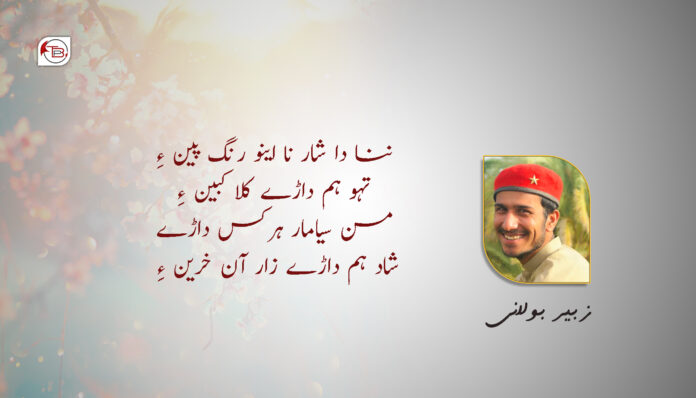 بلوچ لمہ وطن ”بلوچستان“ نا گلزمین سنگ مرمر، کرومائیٹ، خیسُن، چاندی، ہر وڑنا قدرتی خزانہ غاتا مڈّی تیان پرے …… داگلزمین باسُنا دِیر تا چشمہ ءِ…… اندا خاطر آن امریکہ مرے یا برطانیہ، فرہنگی پرتگیزیک ہر اسٹ دا گلزمین آ کوزہ کننگ خواہک……! ولے ہرا وخت کسس اگہ دا گلزمین آ بدانگا نظر ٹی ھُرانے دا گلزمین نا فرزند اک تینا کاٹم ءِ ندر کرسہ دا دھرتی ءِ دتر ٹی خیسُن کرینو ولے دشمن ءِ چٹیفنو…… اینو اسکان کس داڑا کوزہ کننگ کتہ نے……