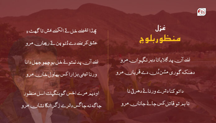 تو خدارا کنا یوٹیوب و ٹک ٹاک والا سنگتاک، میر و ٹکر و سردار نا گاٹ مروکا ایلماک، بلوچستان آن کشمیر کن ریلی کشوکا ورناک، تالی چٹنگ و سلامی تننگ اٹ خوش مروکا سنگتاک، جاغہ جاغہ اِرا گریڈ نا پیشن نا بروکا سپاہی تا مونا خنتے لڑونج کریسہ تینا جاغہی مننگ نا ثبوت تروک ایلماک دسا تو سماء کبو۔ اخس پین بے ضمیر مرورے؟ اخس پین ظلم سگورے؟ اخس پین لغوری کرورے۔۔۔۔ بس کبو خدارا بس کبو، اینو بش مبو دا ڈیہہ کن بش مبو، دا راج کن، دا قوم کن، دا قوم نا حیات کن بش مبو۔