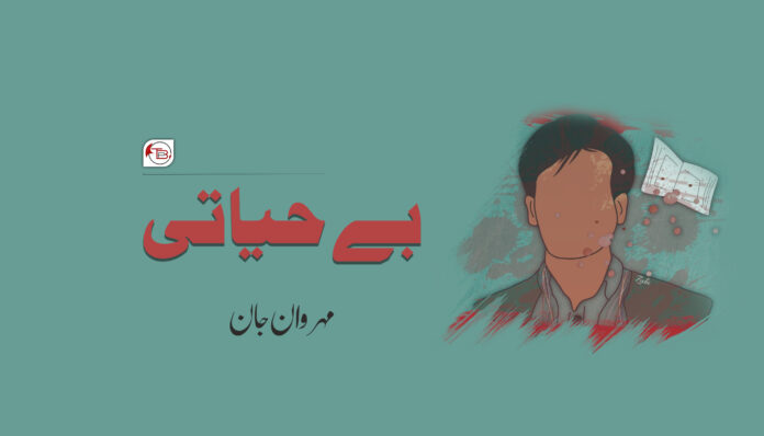 حیات بلوچ ولد محمد مراد تربت آبسر نا تولوک ءُ ورنا اس ئسکہ، او کراچی یونیورسٹی ٹی ساہیکولوجی ڈیپارٹمنٹ ٹی آخری سال نا نودربر اس ئسکہ، ایہن تو دا وختے اودے یونیورسٹی ٹی مروہی اس ولے کرونا نا سوب آن دا 13 اگست ءِ او تینا علاقہ ٹی ئس۔ تینا لمہ و باوہ ءِ الار نا باغ ٹی کمک کریکا ہرادے اونا باوہ ٹھیکہ ٹی ارفیسوس۔ 13 اگست نا دے تربت ٹی بم تراک اس ایف سی والاتیا مس، ایف سی والاک حیران و ہبکہ مسر، ہیتاک ہنار ایہان تا دنکہ ہر وخت او مریرہ۔ ایلو ورناک ہشار مسر نرار، اوفتے خبر اس دننگا وختے ایف سی والاک پی بیغرہ۔ دا گڑا المی کل ءِ خبر ءِ ولے حیات الار نا باغ ٹی تینا کاریم اٹ لگوک مس، حیات کن بے حیاتی اس مس۔ اونا زند ءِ بے زند کننگ نا ذریعہ اسے بہانہ اس مس۔ ایف سی والاتا کل ءِ خبر ءِ کہ او کچک ءُ بندغ ءُ۔ ولے حیات موٹو سادہ مس۔ حیات نا ہڈ کننگ اس متو ایف سی نا کچکی و ستم گری نا اسے پین دڑدی ءُ داستان اس مسک دنکہ ہمے وختان پاکستانی فوج نا دو آن مننگے۔ حیات نا دوک پیہن ءُ چادر اسیٹی تفنگار، اونا بے وس و بزگ انگا لمہ باوہ نا مونا۔۔۔۔ لمہ و باوہ پریاد کریر، منت کریر۔ لمہ تے گد ءِ تینا تورے ایف سی والاتے دنکہ بلوچ دود و ربیدگ ٹی جنگ بندی کن کننگک ولے کچک انت پو مریک انسان و انسانیت نا بولی ءِ۔۔۔۔ حیات نا لمہ باوہ غا ترند مریسہ او حیات نا نت و دوتے تفیر، بقول خن خنوک شاہد آتا “حیات نا خنتے تفنگ آن پد اونا مون ڈغار کن تسر اودے لیٹفیر۔ و اسہ دم تون سم کاری کریر۔ حیات دیخہ لڑزہ و لتڑی کرے, دوتے سریفے کاٹم ءِ برڑ کننگ نا کوشست کرے ولے اچ کننگ کتو بس ساہ ءِ باہیفے۔”