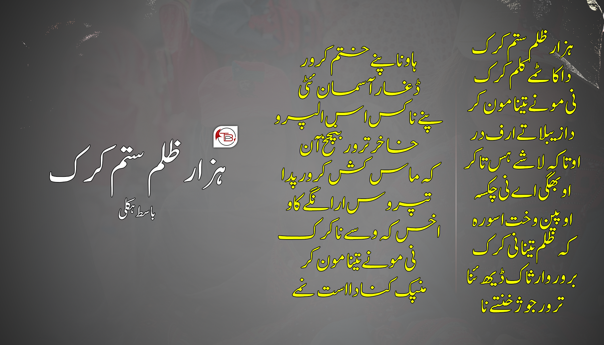 اندن کہ اندا آپریشن نا پنچمیکو لڑ ئٹ 25 مارچ 2024 آ تربت ںٔٹ دژمن نا نیول بیس پی ایس این صدیق آ جند ندر آک جہلو کریر ہراٹی بشخ الوکا دلیر اک جند ندر ایوب اعظم، جند ندر خلیف، جند ندر مراد حاصل، جند ندر وجداد دژمن نا جند نا ہند آ اودے سرپند کریر ہمو جند ندر آک ہرا تینا دتر ںٔٹ دا ڈغار تون مہر و مابت ءِ درشان کریر اوفتا پُتک ہلوکا جونک اوفتا دلیری نا شاہدی ءِ تسُرہ۔ او تینے چُنڈ چُنڈ کریر تینا ڈغار نا اندا مڈی تا رکھ ئکن۔ او تینا ملی تے ڈھیر کریر تینا گڈیکو سُم تے ںٔٹ، گواچن ںٔٹ دا بھاز بلو گپ ںٔسے ولے ہمو جندندر آک اندا ڈغار نا رکھنگ کن تینا زند، چنا ،لمہ، باوہ، ایڑ و ایلم تا جاگہ غا تینا راج نا پِن آ کریر دا کسہ بیرہ ہمو جندندر آتا کِسہ اف بلکن دا ہمو راج ءِ درشان کیک ہرافک تینا ننگ تینا حق و تینا ڈغار کن تینا ساہ تے ندر کننگ آن ام خُلپسہ۔